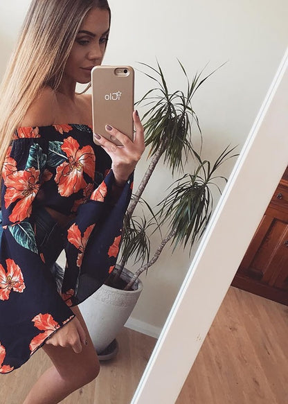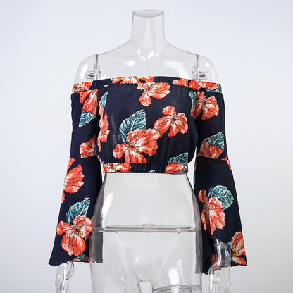 Bluza bleumarin, crop, imprimeu floral, Addie C10