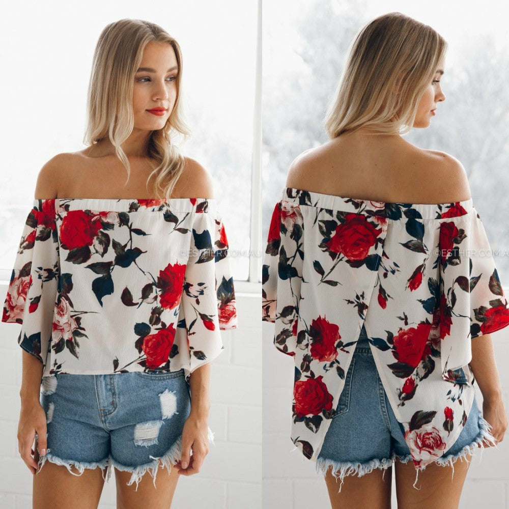 Bluza alba, asimetrica, imprimeu floral, Adelia C10