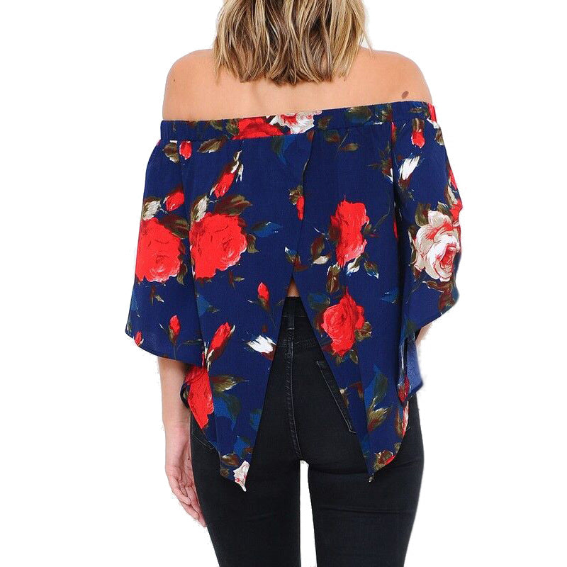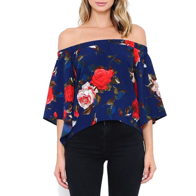Bluza bleumarin, asimetrica, imprimeu floral, Adeline C10