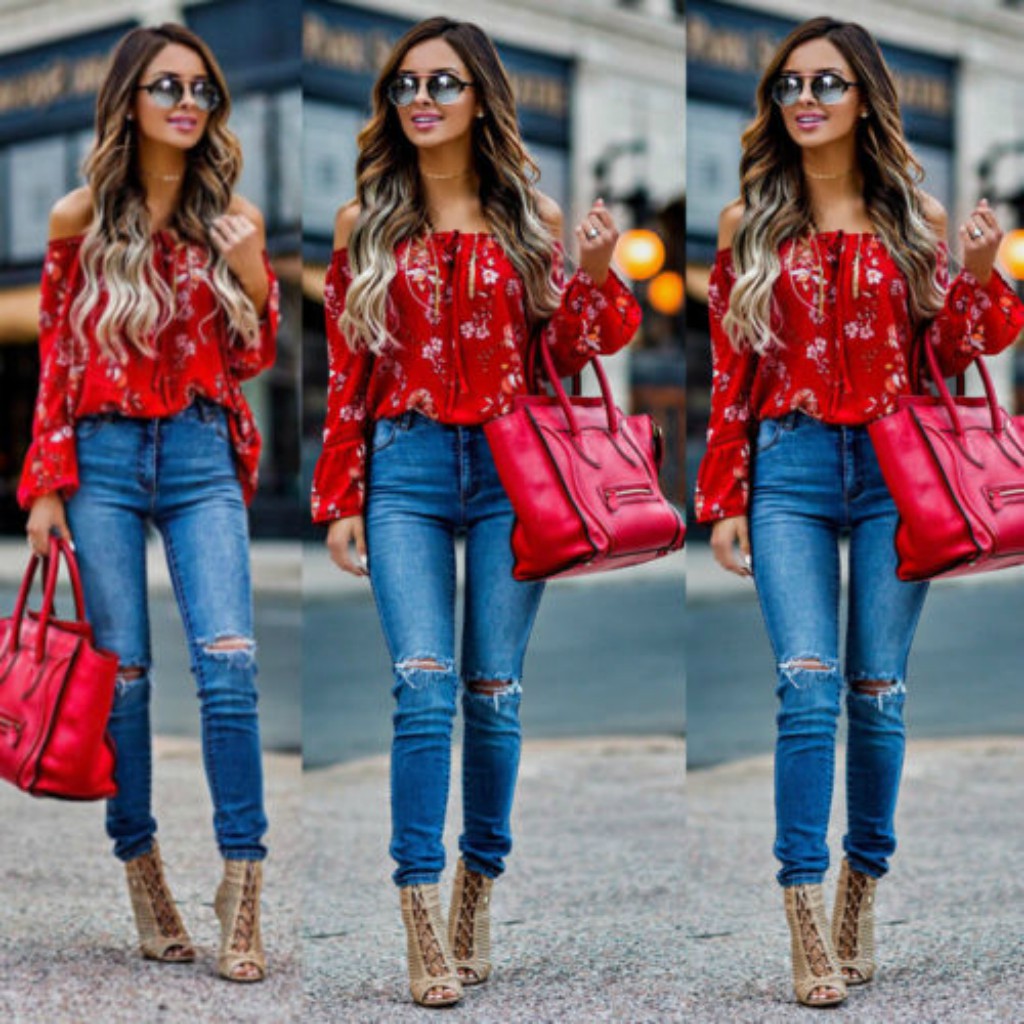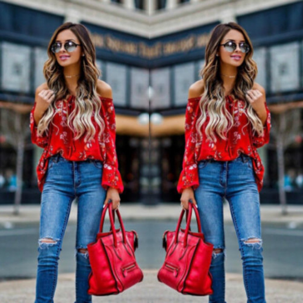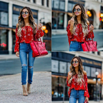 Bluza rosie, imprimeu floral, Annetta C10
