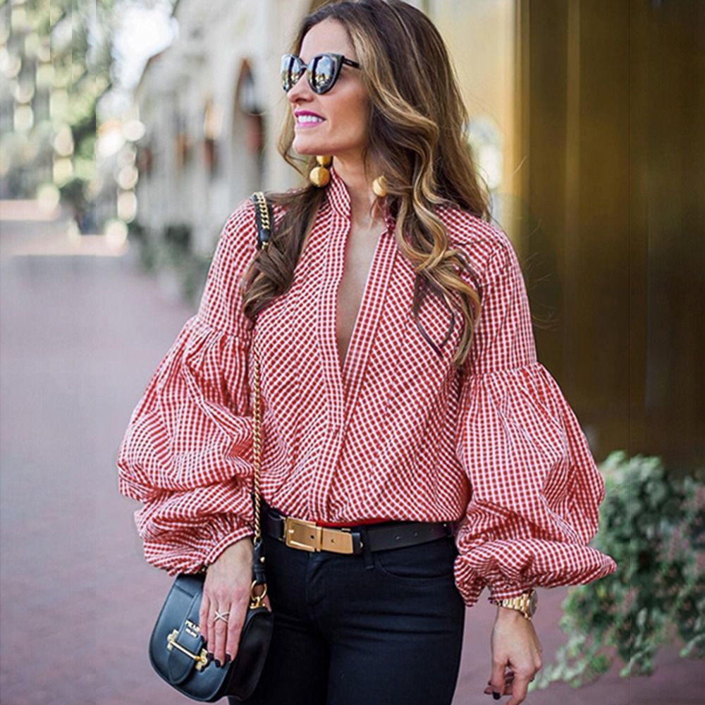 Bluza rosie, cu maneci bufante, Clarita C10