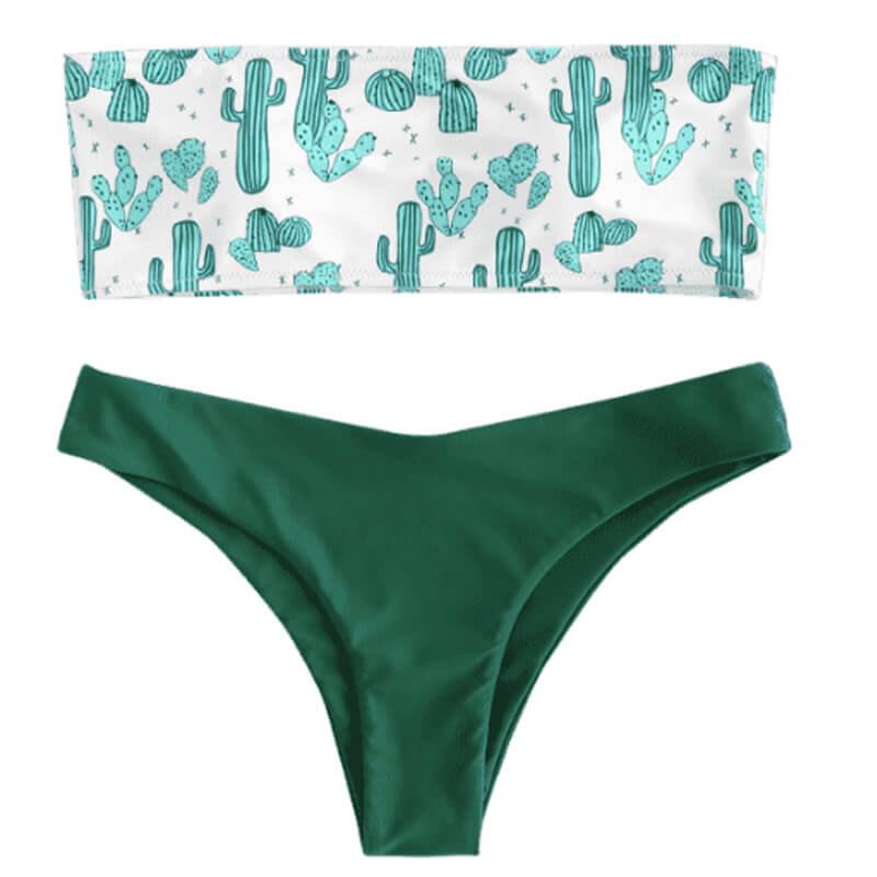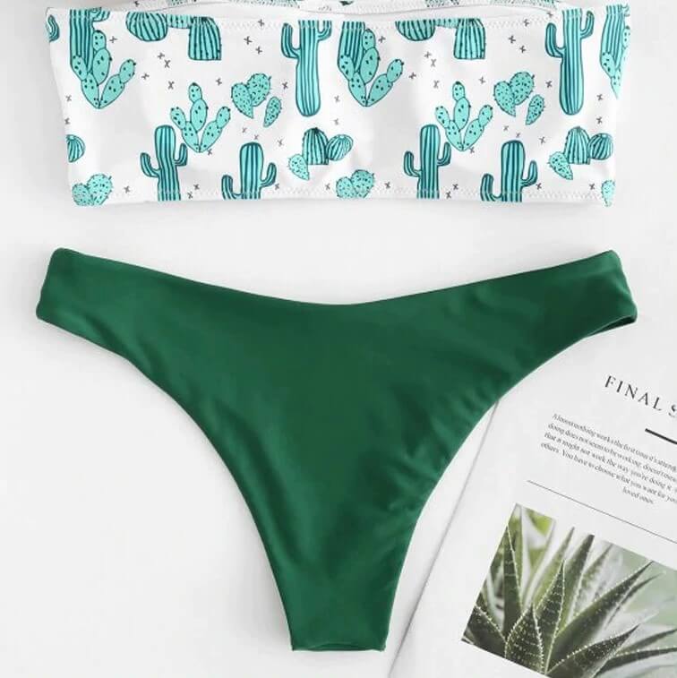 Costum de baie 2 piese, cactusi, verde, Julina C32