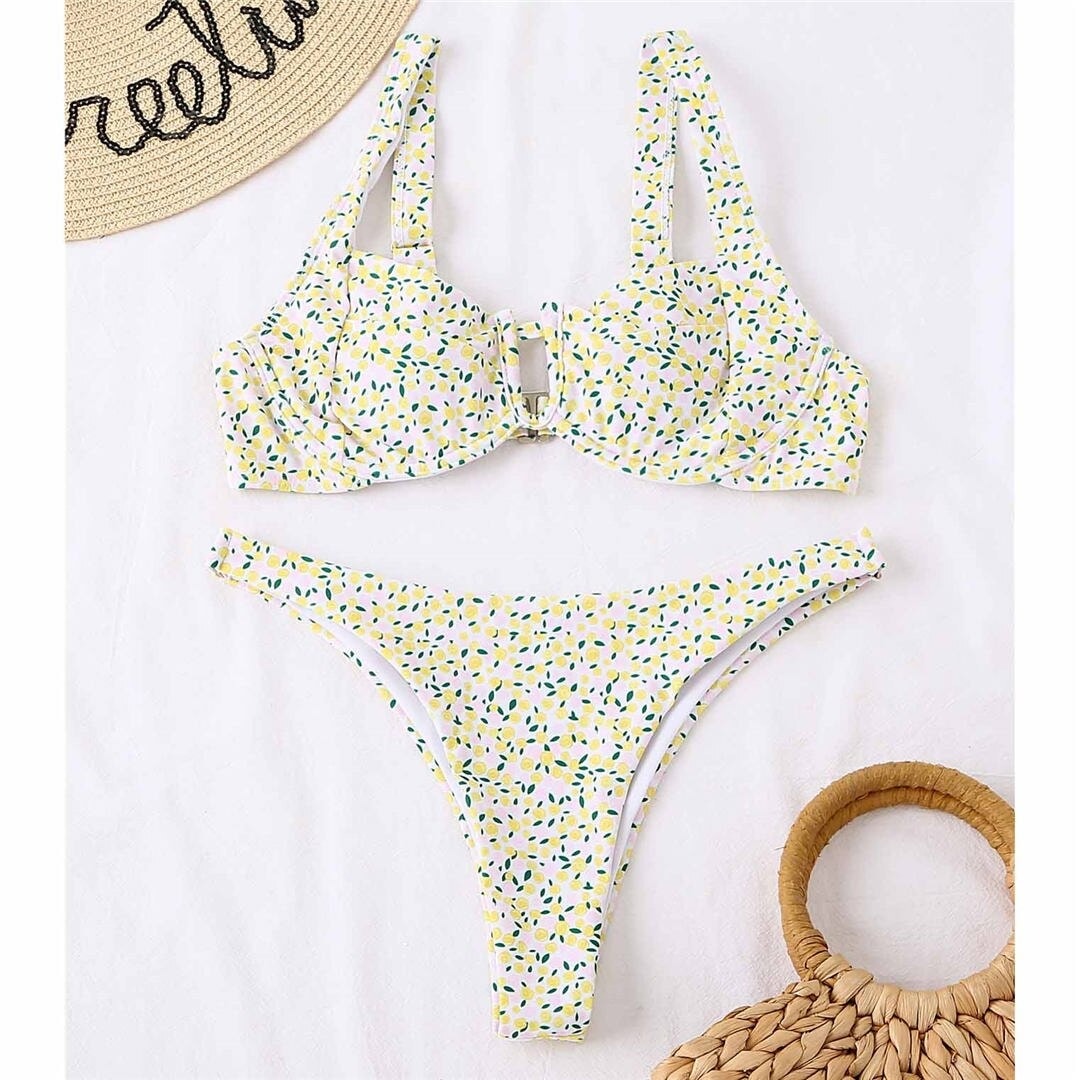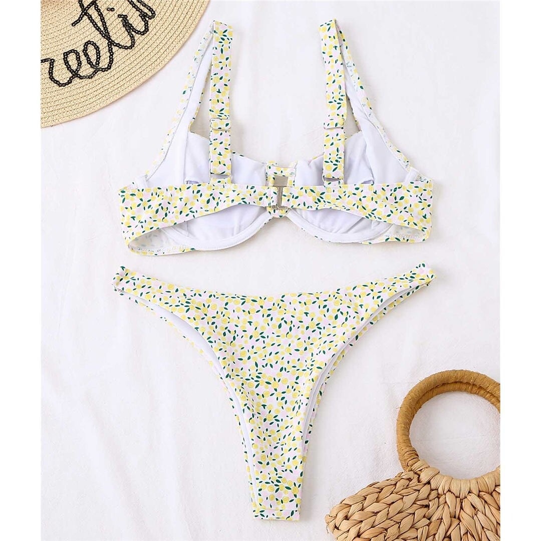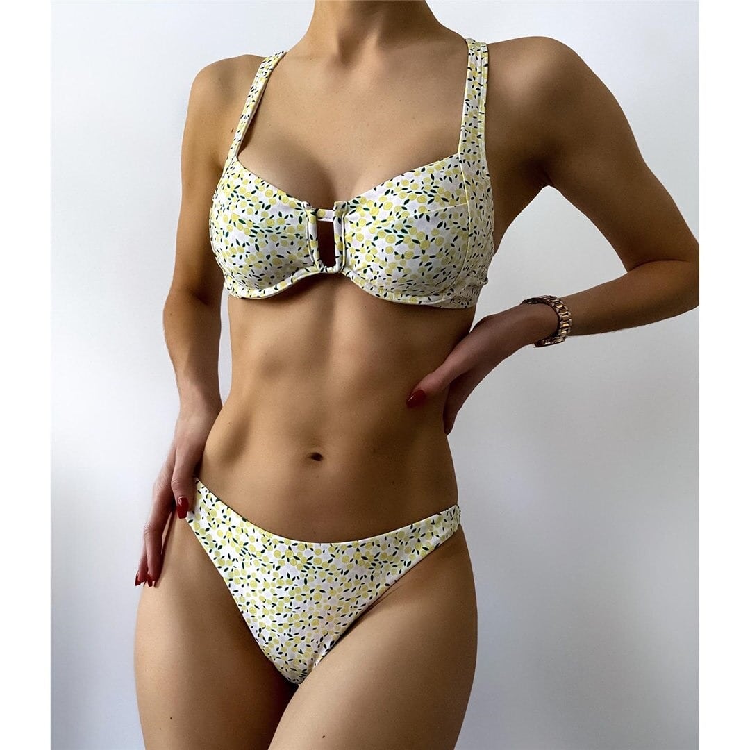 Costum de baie 2 piese, galben, cu lamai, Liddi C49 OUT