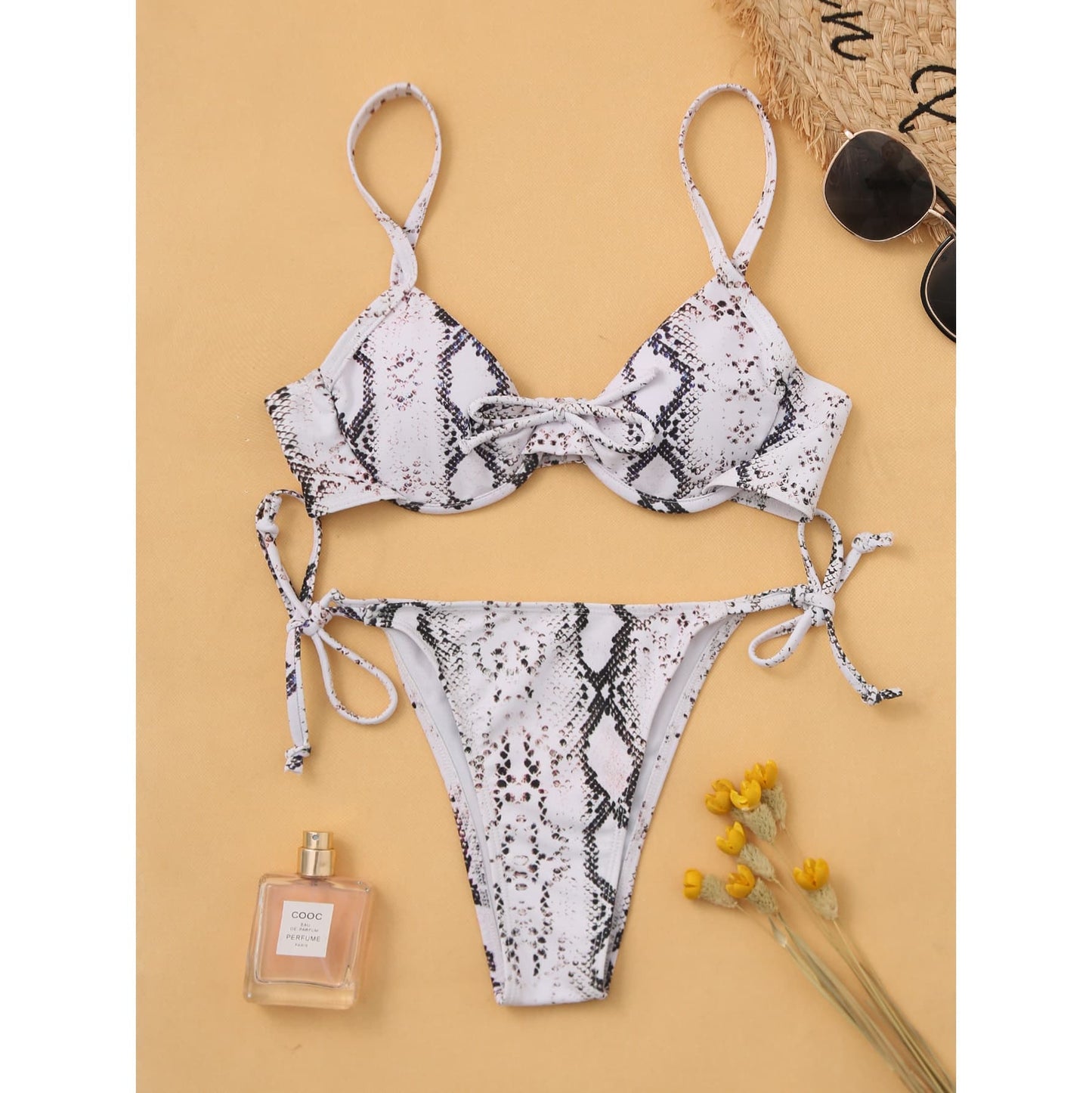 Costum de baie 2 piese, gri, imprimeu piele de sarpe, Linn C39