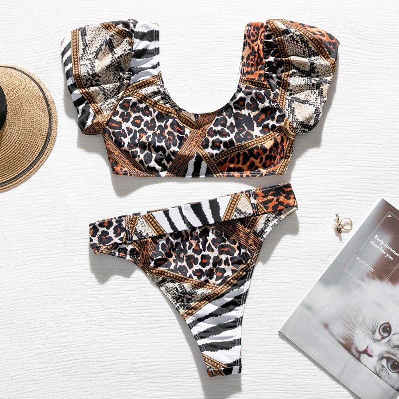 Costum de baie 2 piese, maro, animal print, Loreta C57