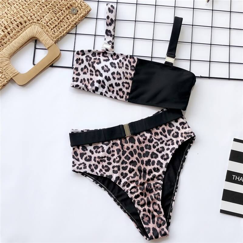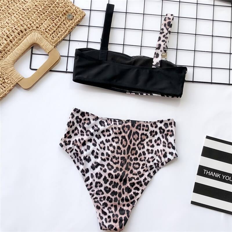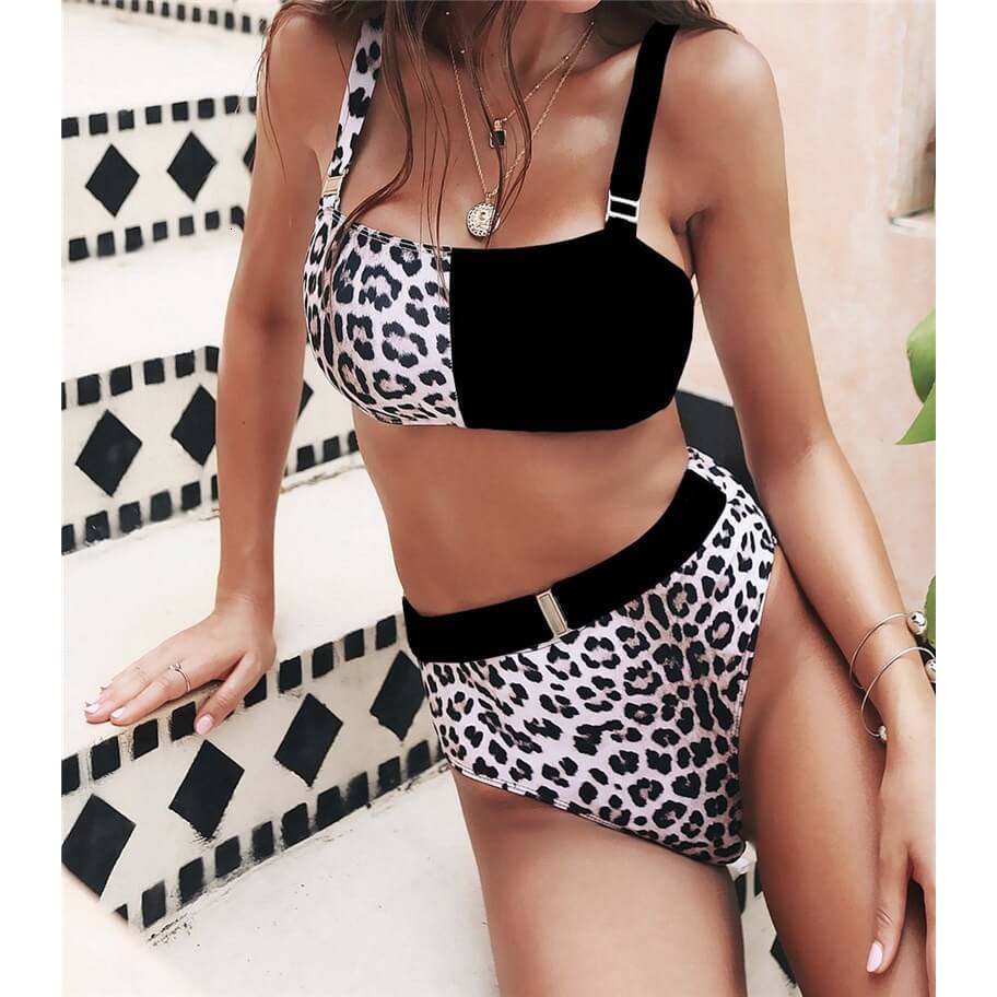 Costum de baie 2 piese, negru, animal print, Joseline C37