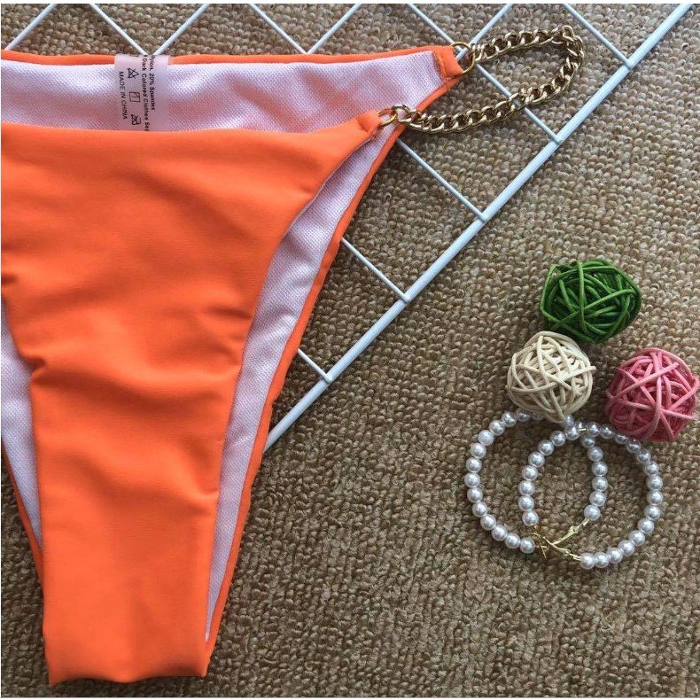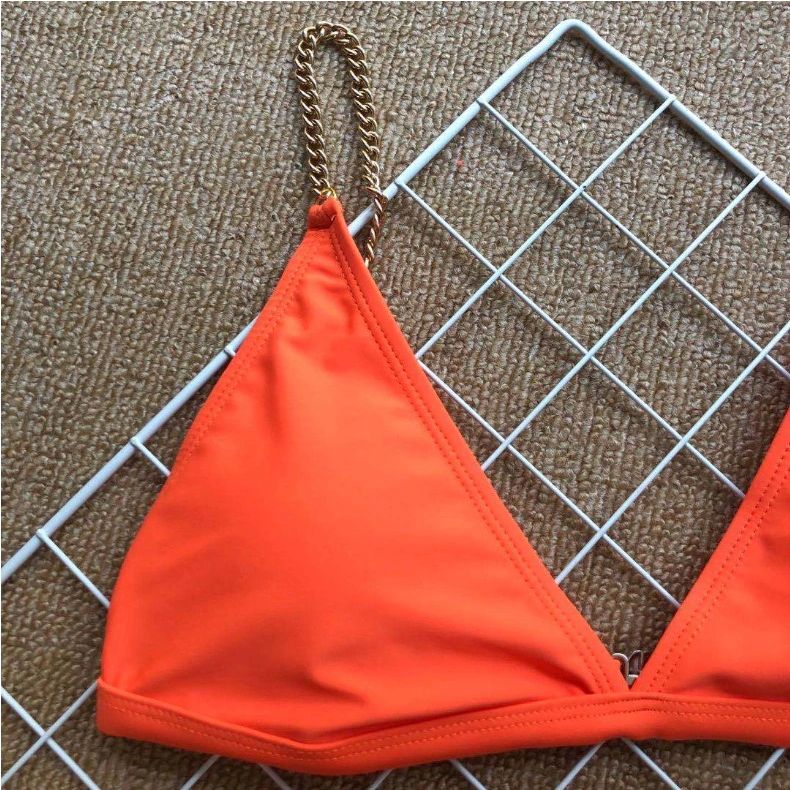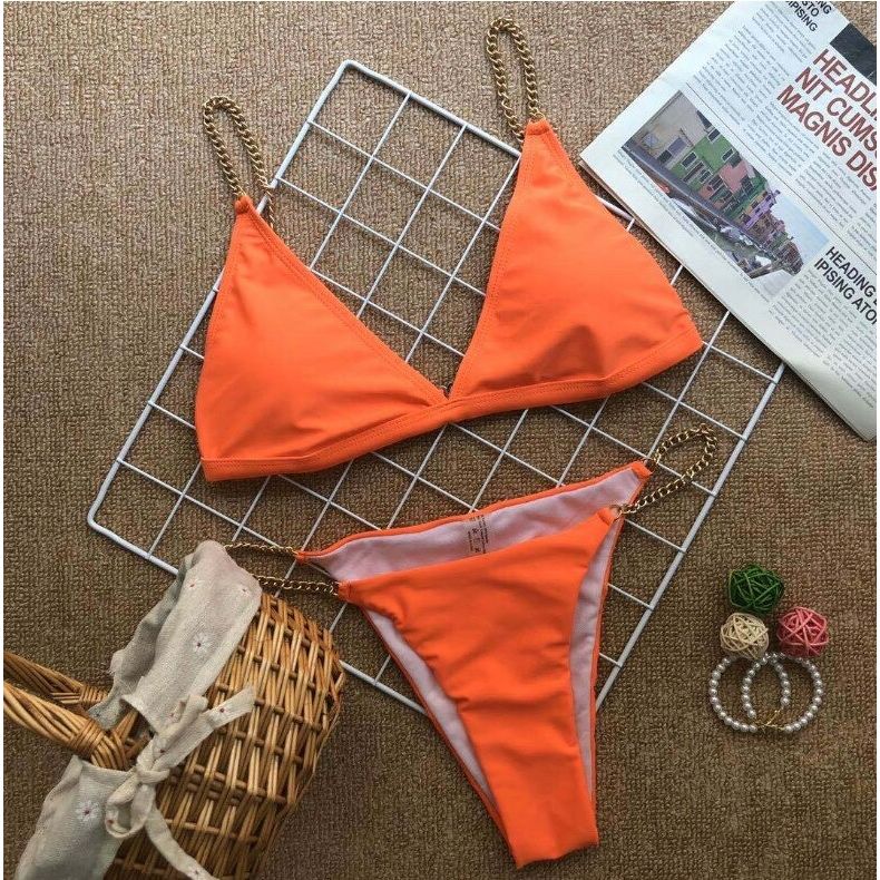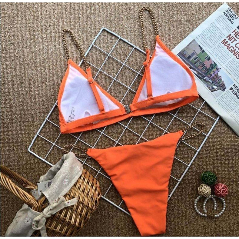 Costum de baie 2 piese, portocaliu, cu lanturi aurii, Magnea C57 OUT