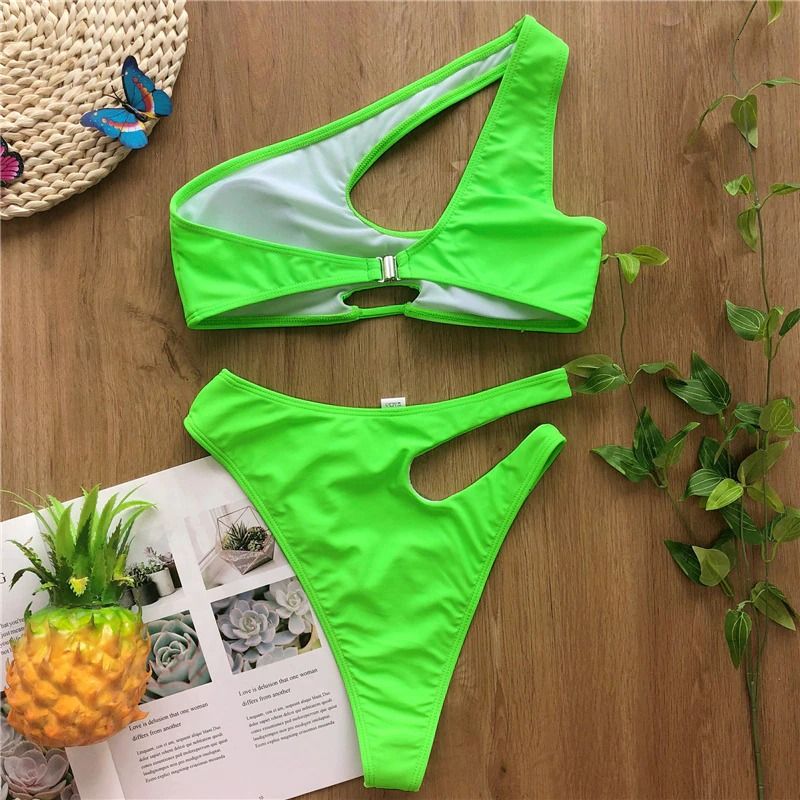 Costum de baie 2 piese, verde neon, Madsea C52 OUT