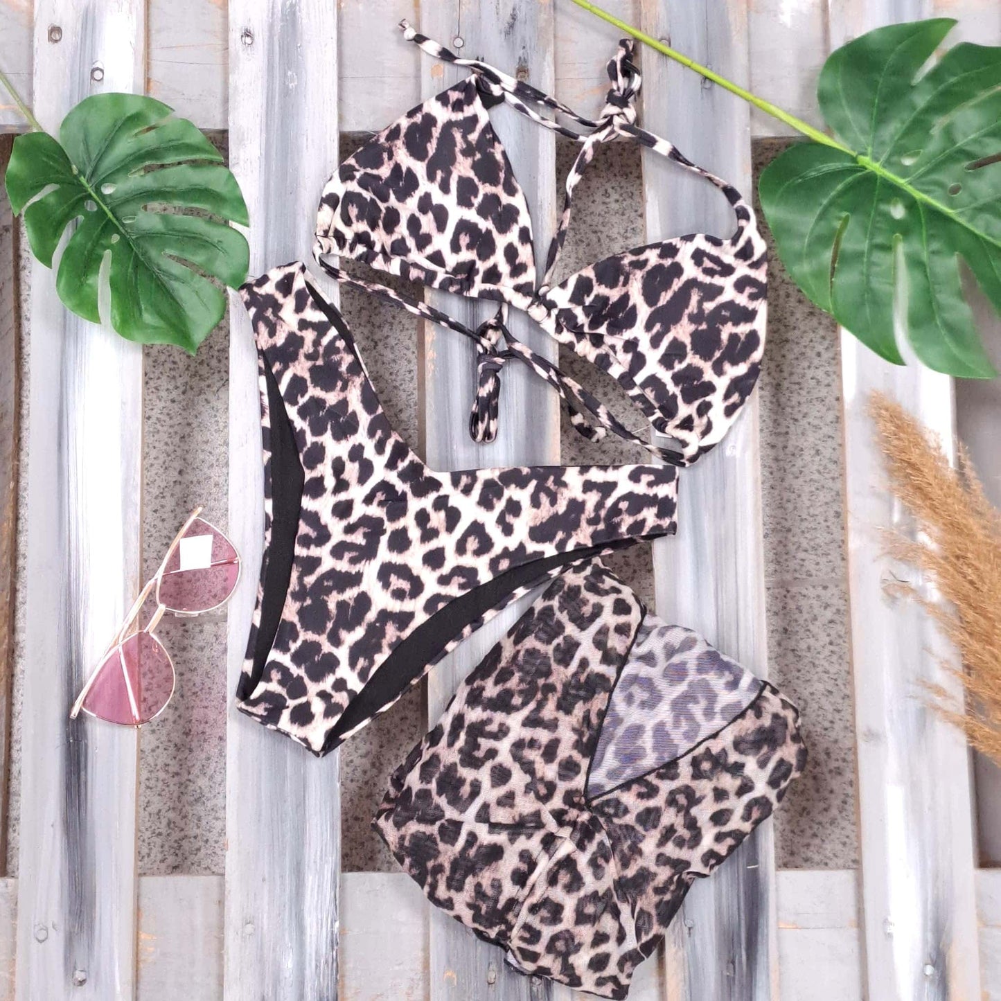 Costum de baie 3 piese, bej, animal print, Hermina C54