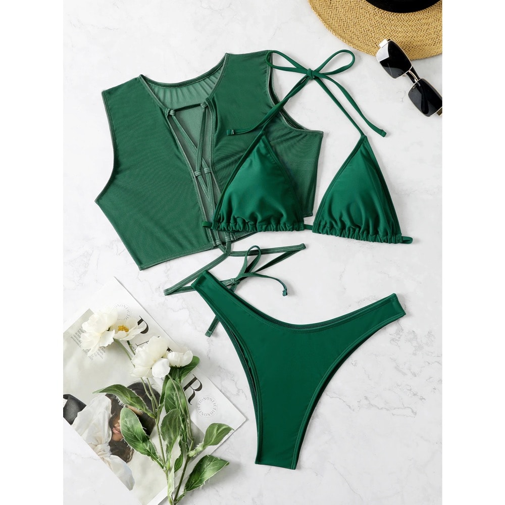 Costum de baie 3 piese, verde, Catrina C33 OUT