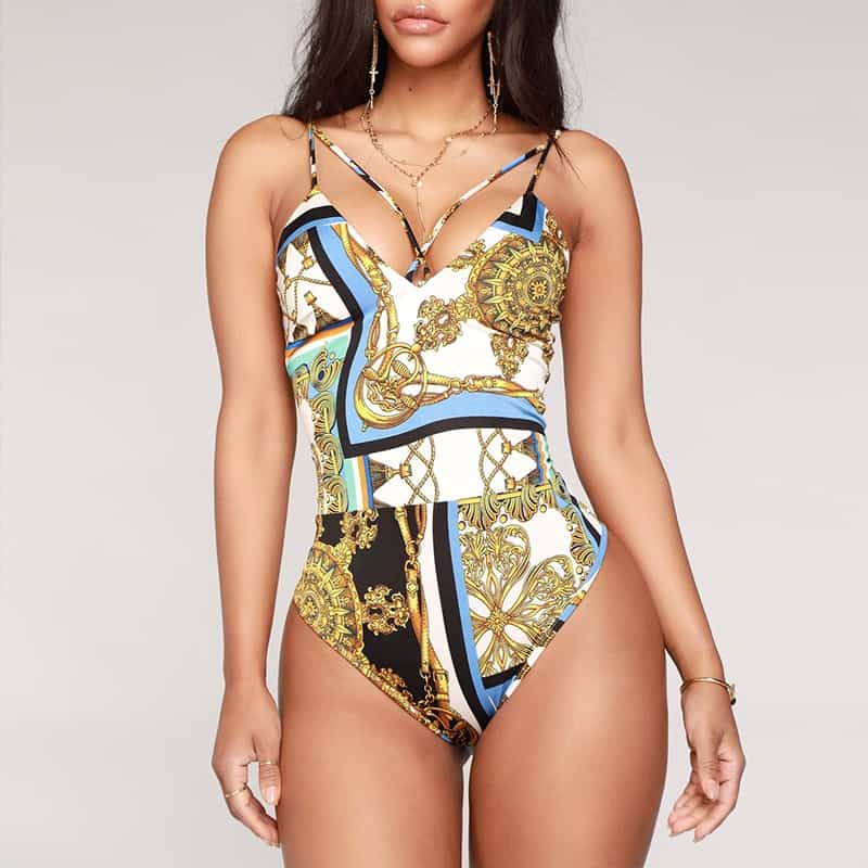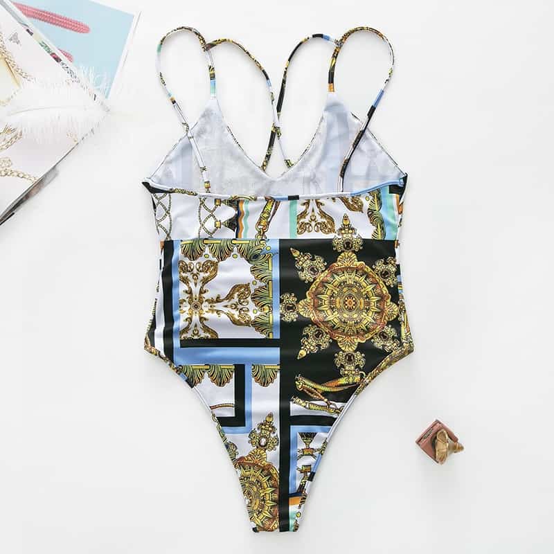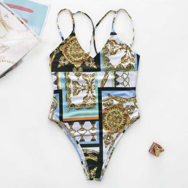 Costum de baie intreg, imprimeu auriu, Elny C34 OUT