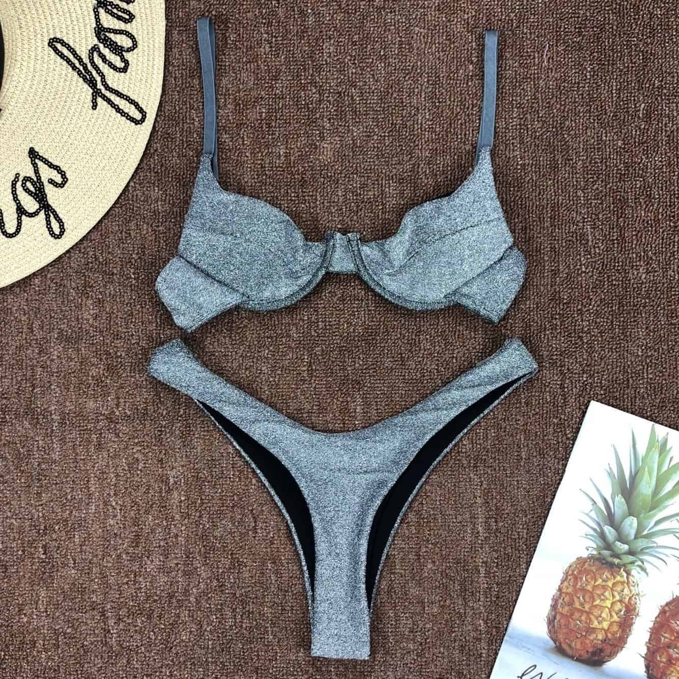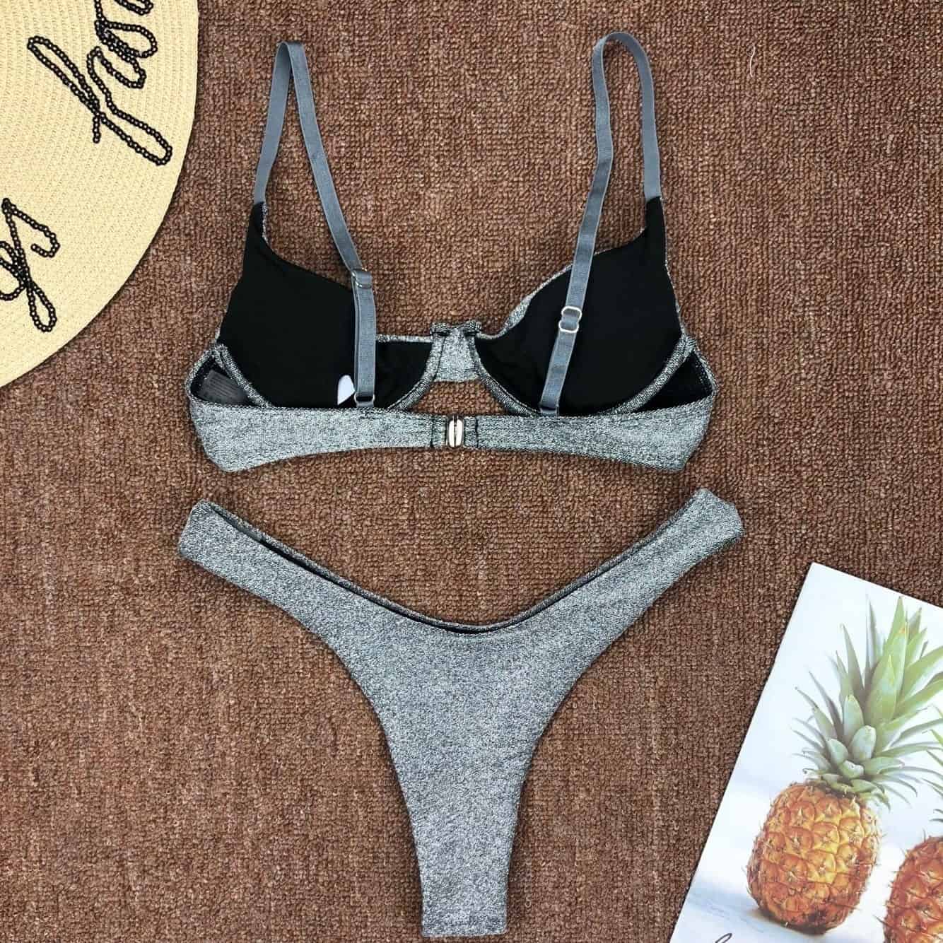 Costum de baie 2 piese, argintiu, Emi C46