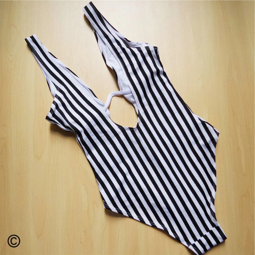 Costum de baie intreg, alb-negru, cu dungi, Miranda C31