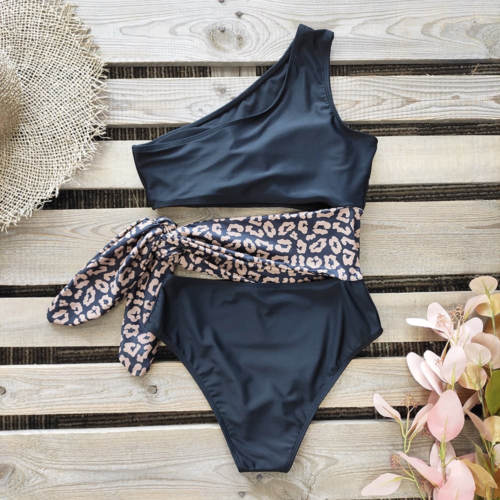 Costum de baie intreg, negru, animal print, Lotten C40
